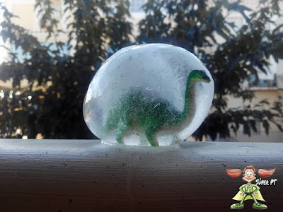 Pudimos jugar con el hielo, ver como se deshacía solo... pero no era suficiente!!! El peque es muy impaciente y quería sus dinosaurios... Yaaa!!!
